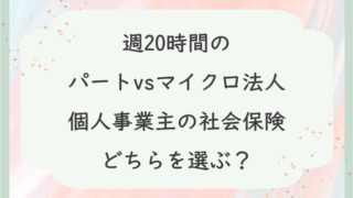 個人事業×マイクロ法人 週20時間のパート vs マイクロ法人|個人事業主の社会保険、どちらを選ぶ? 個人事業主として働いていると、国民健康保険と国民年金の保険料負担が大きいと感じることはありませんか?過去の記事では、週20時間のパート雇用で社会保険に加入すると、事業所得に社会保険料がかからなくなる仕組みを解説しました。しかし、実際にはもう... 2025.12.11 2025.12.13 個人事業×マイクロ法人
